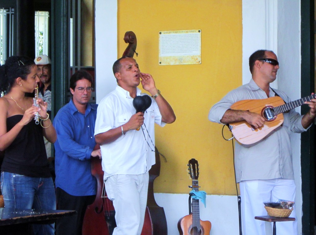Muzyka to dusza Kuby. Nie sposób pozostać głuchym na miłosne wołanie afrykańskich bębnów i hiszpańskiej gitary. Muzyka obecna wszędzie, dociera z zakamarków podwórek, w których regularne uderzenia rzemieślniczych narzedzi wtóruja glośnym sąsiedzkim rozmowom – ” pokrzykiwania DO – LO – REEEES mieszają się z gwarem dzieci bawiących się na ulicy, psy ujadają, przez uchylone drzwi „casy”chrypie obiornik TV, a sprzedawca słodkich orzeszkow pokrzykuje „mani mani” zachwalając swój towar, stukot dorożek, przerywany rżeniem koni dopelnia symfonię ulicy. Ponuro i głośno bębnią tlumiki starych chevroletów przerywane piskliwym dźwiekiem cocotaxi. Kakofonia ulicy – niezestrojone dzwięki .